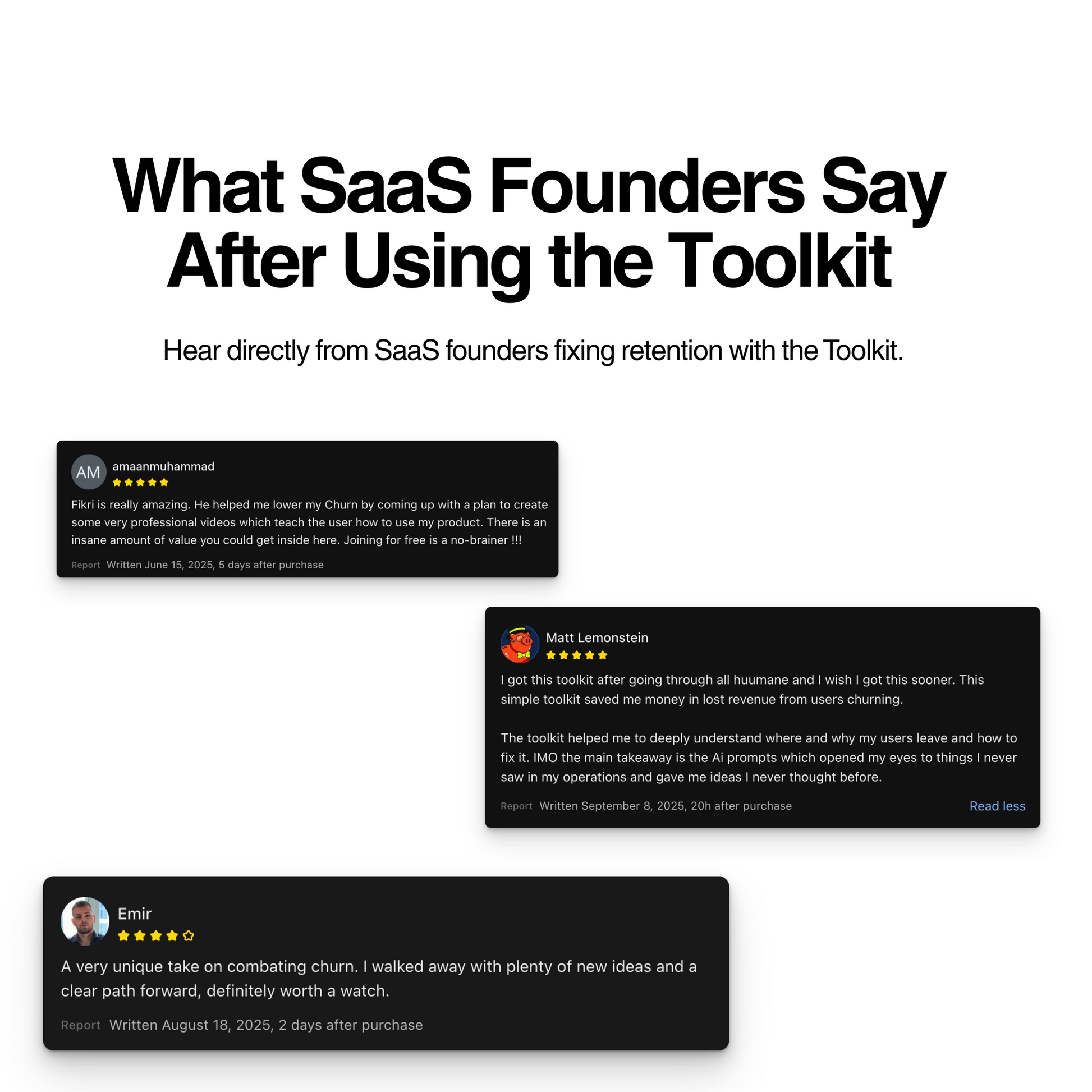 This toolkit was created from the user’s perspective, solving the exact frustrations that make customers leave, so you can finally stop churn at its root.